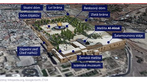 Múr nárekov (alebo Západný múr) - jediné, čo ostalo stáť z veľkého židovského Chrámu na Chrámovej hore po zničení Rimanmi. Dnes najposvätnejšie miesto Židov. Mešity vznikli v 7. storočí. Staršia je mešita AL AQSÁ, postavená v triezvejšom stavebnom slohu, ktorá bola niekoľkokrát zničená. Druhá je OMAROVA MEŠITA, ktorá pôvodne neslúžila ako mešita, ale iba ako ochrana posvätného kameňa vo vnútri. Mešita je dominantou Jeruzalema. V súčasnosti patrí nielen medzi najhlavnejšie, ale aj najstaršie a architektonicky najbohatejšie mešity na svete.