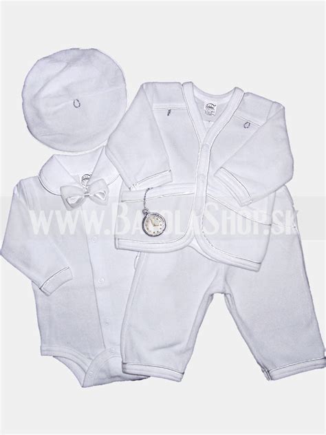 - Krstné oblečenie pre chlapčeka: 4-5 dielne slávnostné súpravy oblečenia, sako, vesta, body košeľa, nohavice, čiapka.