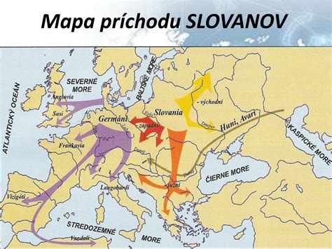 Mapa rozšírenia Slovanov v 8. a 9. storočí.