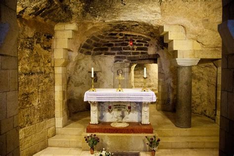 Zotrvať môžeme iba chvíľu, aby sme nechali priestor aj ostatným čakajúcim. Jaskyňa je pod hlavným oltárom, predtým tam bola tradičná hosťovská izba, „…v hostinci nemali miesta…“ je zastaralý preklad, myslela sa tým hosťovská izba, tak ako v tom čase stavali domy v Betleheme. Jasličky z jaskyne sa od r.560 nachádzajú v Ríme v Santa Maria Maggiore. Vchádzame aj do Jaskyne mágov, ktoré ako jediné patrí františkánom a môžu sa tu slúžiť sv.omše. Za dverami je skrytá aj ďalšia sieť podzemných jaskýň.