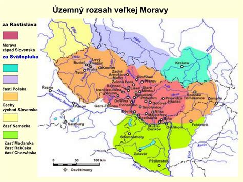 Mapa zobrazujúca rozsah Veľkej Moravy v roku 894.