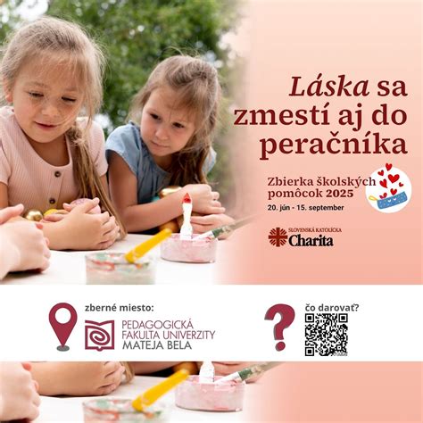 Farská katolícka charita Trstená sa zapojila do iniciatívy Slovenskej katolíckej charity - Láska sa zmestí aj do peračníka - zbierky školských pomôcok. V dňoch 4.8. - 15.9. 2025 budete môcť doniesť a darovať nepotrebné zachovalé a vyčistené alebo nové nepoužité školské pomôcky, ktoré sa rozdistribuujú medzi deti, ktorých rodičia si zakúpenie nových pomôcok nemôžu dovoliť. Môžete darovať písacie potreby, zošity a obaly, výtvarné potreby alebo ostatné potreby.