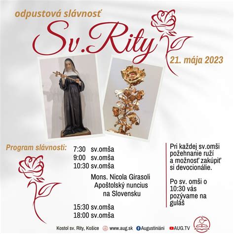 Sv. Rita z Casie, patrónka „nemožných“ prípadov, sa vzýva pri beznádejných situáciách. Už počas života sa v nej Boh oslávil zázrakmi. Relikvie svätej Rity na Slovensko priniesla delegácia z Cascie, v ktorej nechýbal arcibiskup diecézy Renato Boccardo, rektor baziliky sv. Samotná svätá omša s odovzdaním relikvií sa uskutočnila podvečer o 18:00 hodine. Zúčastnili sa jej stovky veriacich a predsedal jej emeritný košický arcibiskup, Mons. Alojz Tkáč.