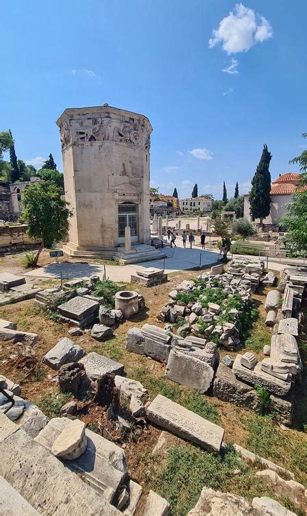 Vežu vetrov, Big Ben antického sveta a prvú meteorologickú stanicu na svete, môžete uvidieť v Rímskej agore. Rímska agora, skôr trhovisko ako fórum, leží východne od Aténskej agory. K Rimanom má v skutočnosti len malý vzťah, okrem toho, že svoje meno získala preto, že bola postavená počas 1. storočia pred Kr., teda počas vrcholného obdobia Rímskej ríše, aby slúžila rastúcemu počtu obyvateľov Atén. Zatiaľ čo Aténska agora bola predovšetkým miestom politických stretnutí, Rímska agora bola hlavne tržnicou.