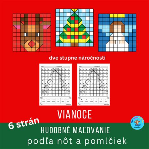 - Hudobné náučné omaľovanky: Obrázky si vymaľuj podľa nôt od E - h a c1 - c3. Téma Vianoce. Spolu 6 obrázkov.