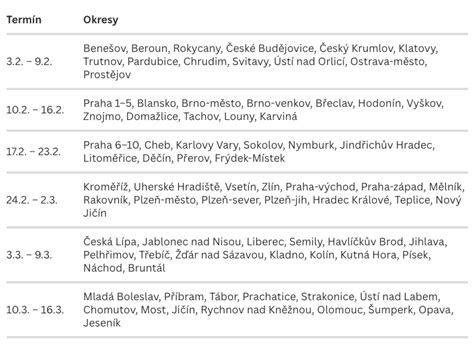 Voľno od pondelka do piatka 23. februára absolvujú žiaci z Banskobystrického, Žilinského a Trenčianskeho kraja. Týždeň voľna je už tradične rozdelený podľa krajov na tri termíny. Žiaci zo stredného Slovenska sa k vyučovaniu opäť vrátia v pondelok 26. februára. Nasledovať bude voľno pre deti z Košického a Prešovského kraja od 26. februára do 1. marca. Ako poslední si užijú voľno počas jarných prázdnin žiaci z Bratislavského, Nitrianskeho a Trnavského kraja v termíne od 4. do 8. marca.