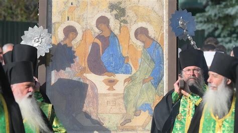 Mimochodom, v miestnom rade ikonostasu Katedrály Presvätej Trojice sa už nachádzala kópia, replika z Godunovových čias. A to cirkvi úplne stačilo, pretože pre cirkevné povedomie sa uctievanie originálu a kópie nelíši. Cirkev často zhotovovala kópie ikon dávnych svätcov a vystavovala ich na liturgickú úctu. Ale pre kultúru je to doska a farby, originál majstra. Po páde Sovietskeho zväzu a jeho ateistickej ideológie nastali nové časy. Včerajší sovietski ľudia sa prezliekli do nových šiat a vyhlásili sa za pravoslávnych. Začiatkom 90. rokov sa začalo hovoriť o reštitúciách, o vrátení cirkevného majetku, najmä ikon. Zo sovietskej minulosti si pravoslávni pamätali, že v múzeách skončili veľké mená maliarov ikon a významné predmety úcty.Vrátenie Ikony Cirkvi v Roku 2023