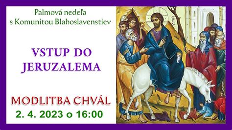 Keď sa Ježiš so svojimi učeníkmi blížil k Jeruzalemu, poslal dvoch z nich do dediny pred nimi. Povedal im, aby našli osliatko, na ktorom ešte nikto nesedel, a priviedli ho k nemu. Keď sa ich niekto spýta, prečo to robia, mali povedať, že ho Pán potrebuje a hneď ho vráti.