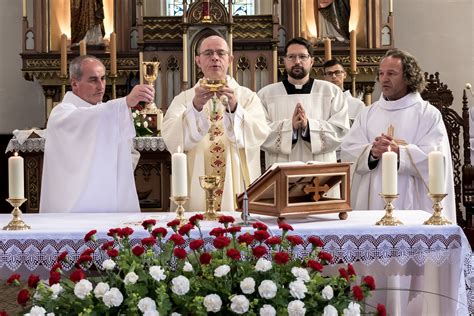 V podveží sú do steny osadené tri náhrobné kamene zo 16. a 17. stavu, hodnosti, ako sme 12. konsekrovali. Felicissima, Venusta a Modesty, ktoré sme priniesli so sebou z Ríma. i v exteriéri.
