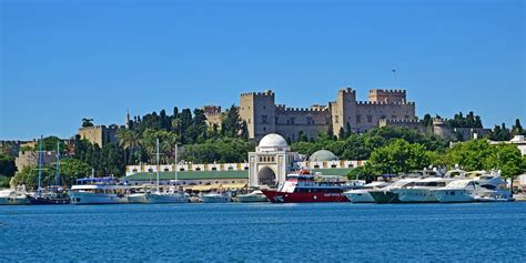 Palác veľmajstrov je situovaný na najvyššom mieste v Starom meste. Masívna pevnosť po odchode rytierov chátrala a bola poškodená veľkým výbuchom, rovnako ako veľká časť Ulice rytierov, no v 20. storočí ju prestavali Taliani ako letnú rezidenciu pre kráľa Emanuela III. a neskôr sa jej zmocnil fašistický diktátor Mussolini. Má viac ako 150 izieb, z ktorých je návštevníkom sprístupnených len dvadsať. Od paláca sa tiahnu mestské hrady, ktoré patria k najlepším príkladom stredovekého opevnenia na svete. Sú dlhé štyri kilometre a v niektorých častiach majú hrúbku až dvanásť metrov. Jednou z pamiatok na dobytie mesta Turkami je ružovo-biela Süleymanova mešita s elegantným minaretom. Za návštevu stojí aj starý prístav Mandraki, chránený dlhým vlnolamom (pevností sv. Mikuláša) a veternými mlynmi. Dva kamenné stĺpy lemujú vjazd do prístavu. Na ich konci stoja sochy jeleňa a lane, symboly ostrova.