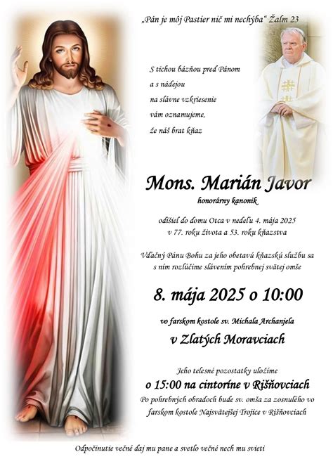 V mene Mons. Jána Oroscha, trnavského arcibiskupa, emeritných arcibiskupov a kňazov Trnavskej arcidiecézy, pozostalým vyjadrujeme úprimnú sústrasť. V modlitbách myslíme na nesmrteľnú dušu nášho zosnulého brata Jozefa.