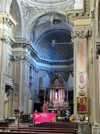 Nádherná bohatá výzdoba stropov, dvanásť bočných kaplniek s freskami z 15. storočia, vznešený oltár a kupola pripomínajú v zmenšenej mierke svätopeterskú baziliku v Ríme. Place-to-visit. Kostol bol prestavaný na prelome 16.-17. storočí, no jeho korene siahajú do prvokresťanských čias.