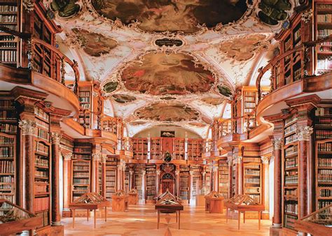 Interiér knižnice opátstva St. Gallen vo Švajčiarsku, pomenovaného po svätom Gálovi.