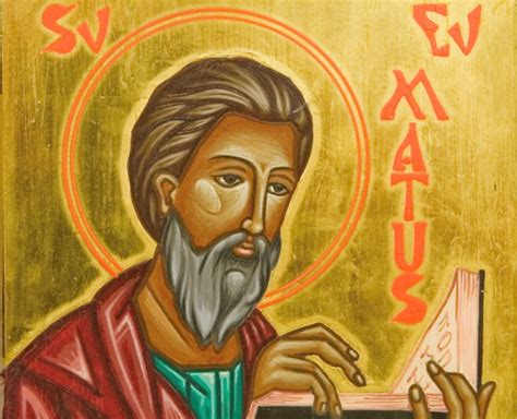 Za čias Krista Pána vládli nad Židmi v Palestíne Rimania, ktorým museli platiť dane od všetkého svojho majetku. Pri Genezaretskom jazere ležalo bohaté obchodné mesto Kafarnaum, cez ktoré viedli obchodné cesty do vnútra zeme a žilo tu mnoho obchodníkov, ktorí svoj tovar vykladali, kupovali a predávali. Preto bola v tomto obchodnom meste známa mýtna rímska stanica.Dôchodky z nej mal v prenájme Žid menom Levi, syn Alfeov, narodený v Káne Galilejskej, kde Spasiteľ vykonal prvý zázrak. Židia nenávideli všetkých výbercov daní a mýta ako utláčateľov, Rimanov, ktorým dane a mýto patrili; lebo títo mýtnici právo vyberania daní a mýta draho prenajímali a preto veľmi utláčali a klamali židovských obchodníkov a od ľudu vydierali nespravodlivým spôsobom veľké dane. A Židia prezývali týchto nenávidených dráčov verejnými hriešnikmi alebo «publikánmi» (vyvrheľmi).Aj mýtnika pri Genezaretskom jazere, Leviho, považovali Židia za zlodeja a utláčateľa Božieho ľudu. Ale mýtnik Levi, syn Alfeov, nepatril k nenapraviteľným hriešnikom. On počul horlivú reč Jána Krstiteľa, Spasiteľovho predchodcu a zaumienil si, že sa polepší. V druhom roku svojho učiteľského úradu prišiel Pán Ježiš do mesta Kafarnaum a uzdravil tam po porážke trpiaceho človeka, i riekol mu: «Dúfaj synu, odpúšťajú sa ti tvoje hriechy!» Keď to počuli učitelia židovského zákona, pohoršili sa a riekli: «Tento sa rúha.» Pán Ježiš ich pokarhal: «Prečo myslíte zlé veci vo svojich srdciach? Čo je ľahšie riecť: odpúšťajú sa ti tvoje hriechy, alebo riecť: vstaň a choď?! Ale aby ste vedeli, že Syn človeka má moc na zemi odpúšťať hriechy, nuž hovorí k trpiacemu po porážke: «Vstaň, vezmi svoju posteľ a iď do svojho domu!» A uzdravený nemocný vstal a išiel domov.Keď to videli zástupy Židov, veľmi sa báli a zvelebovali Boha, ktorý dal takú moc Pánu Ježišovi. O tomto zázraku a o mnohých iných počul i mýtnik Levi, ktorý vyberal clo z nákladných lodí a vozov pri neďalekom Genezaretskom jazere. A keď neskôr láskavý Spasiteľ pri brehu Genezaretského jazera vyučoval zástupy ľudu, ktorý ho nasledoval, uzrel mýtnika Leviho pod šiatrom pri stolíku a riekol mu: «Nasleduj Ma!» A Levi sotva počul tieto láskavé slová divotvorného Učiteľa, ktorý odpúšťa hriechy, vstal od svojho výnosného úradu a išiel za chudobným Ježišom, a stal sa Jeho horlivým učeníkom a nevrátil sa nikdy viac k svojmu hriešnemu zamestnaniu.Áno, odložil aj svoje meno, ktoré ako mýtnik nosil, a od toho času sa volal Matúš. Toto skoré obrátenie verejného hriešnika svedčí o veľkej moci Božej milosti, ale i o povahe horlivého učeníka a apoštola, ktorý hneď nasledoval volanie Božej milosti Božej a s milosťou Božou ako horlivý apoštol až do svojej mučeníckej smrti účinkoval. Sv. Matúš bol siedmym mužom, ako to dosvedčujú sv. evanjelisti Marek a Lukáš, ktorých Spasiteľ k apoštolskému úradu povolal; on sám seba kladie vo svojom evanjeliu v pokore na neskoršie miesto.Nikdy nezabúda na to, kým bol, a keď uvádza vo svojom evanjeliu mená apoštolov, seba nazýva mýtnikom (Mt 10,3). Po svojom povolaní za Spasiteľovho učeníka je Matúš celý bez seba od radosti a vďačnosti, že sa stal účastným takej veľkej milosti. Dal pripraviť vo svojom dome veľké hody Pánu Kristovi a spoluučeníkom, ku ktorým i mnohých mýtnikov pozval; to preto pozval tých hriešnikov, aby aj oni poznali učenie Ježiša Krista a aby sa obrátili.Keď to zbadali židovskí farizeji a zákonníci, pohoršili sa nad tým a riekli k Jeho učeníkovi: «Prečo s publikánmi (vyvrheľmi) a hriešnikmi je a pije váš majster?» A Ježiš zahanbil bezočivých namyslených obhájcov židovského zákona, keď im riekol: «Nepotrebujú zdraví lekára, ale nemocní. Iďte a učte sa, čo je: Milosrdenstvo chcem a nie obety! Lebo neprišiel som povolať spravodlivých, ale hriešnikov.»Toto bolo dobré ponaučenie pre pyšných a pretvarujúcich sa farizejov, ktorí s opovrhnutím pozerali na svojich blížnych a vo svojej pyšnej nadutosti sa nestýkali ani s tými, ktorých mohli otcovským napomenutím od záhuby zachrániť a svoju lásku k blížnym im tak preukázať. Po hostine Matúš viac neopustil Pána Ježiša Krista a mnohí zo stolujúcich hriešnikov prijali učenie Božie.A milosť Božia účinkovala neprestajne v horlivom učeníkovi Matúšovi po jeho povolaní. Verne sprevádzal Ježiša Krista na všetkých učiteľských cestách, počúval z Jeho úst slová večného života, a bol svedkom premnohých divov a zázrakov, ktoré Spasiteľ činil; áno bol očitým svedkom Jeho utrpenia a smrti, slávneho Zmŕtvychvstania a Nanebovstúpenia. Po Nanebovstúpení Pána Ježiša Krista prijal i sv. apoštol Matúš Ducha Svätého v turíčny deň. A ohlasoval sv. Evanjelium s inými sv. apoštolmi, ako rozprávajú cirkevný dejepisec Eusébius a sv. Epifanes, najprv v Jeruzaleme až do roku 42. a vo Sv. Zemi, a dokazoval Židom, že Ježiš Kristus, ktorého ukrižovali, je jediný a pravý Mesiáš, ktorého proroci predpovedali, a nebál sa vysokých židovských kňazov, ani najvyššej rady, ktorí to prísno zakazovali ohlasovať.