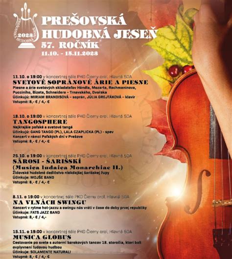 | Prešovská hudobná jeseň | 1. októbra - 5. novembra 2025 | Prešov, PKO Čierny orol, Konkatedrála sv. Mikuláša |