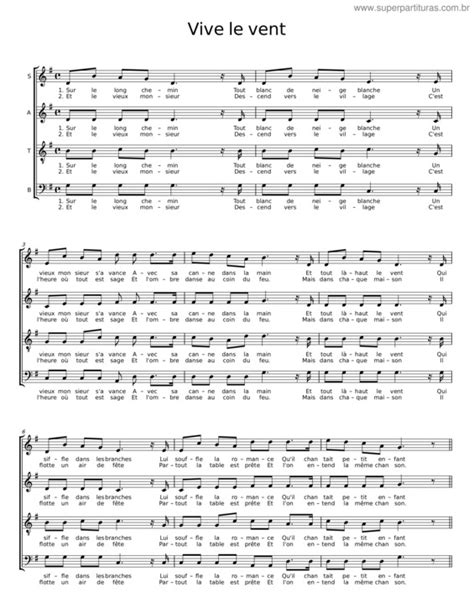 Vive le vent, vive le vent (Nech žije vietor, nech žije vietor)Vive le vent d’hiver (nech žije vietor zimy)Qui s’en va sifflant, soufflant (ktorý odchádza hvízdajúc, fúkajúc)Dans les grands sapins verts (do veľkých zelených jedličiek)