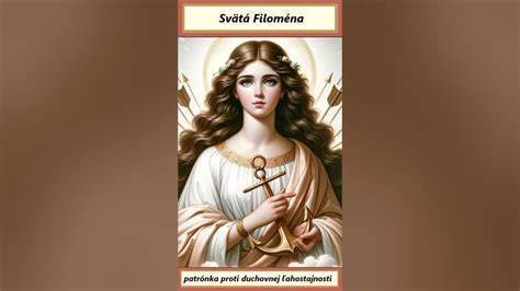 Svätá Filomena, patrónka detí, mládeže a zázračných vyslyšení, žila v 3. storočí v starovekom Grécku. Bola dcérou kráľa a kráľovnej, ktorí sa po dlhom hľadaní viery obrátili na kresťanstvo. Vo veku trinásť rokov Filomena zložila sľub panenstva a zasvätila svoj život Ježišovi Kristovi. Keď cisár Dioklecián požadoval jej ruku, Filomena odmietla, čo viedlo k jej mučeníctvu.