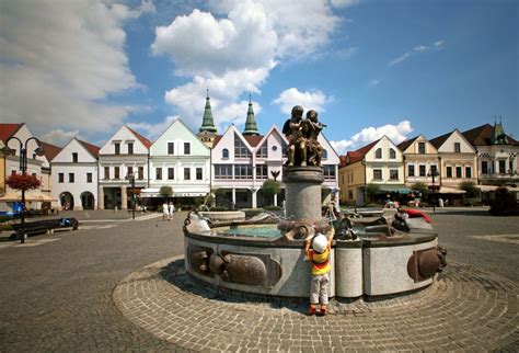 - Bytča - veľké námestie s potokom, renesančný zámok (štátny archív), Thurzov Sobášny palác so grafitovou výzdobou