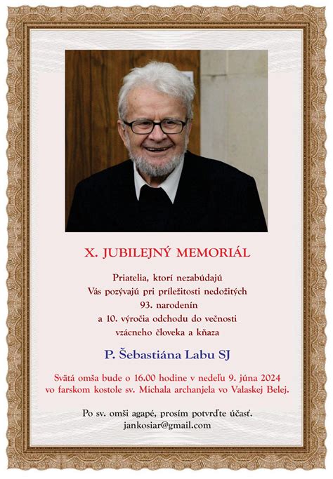 - Páter Sebastian Labo - nar. 19.6.1931, v roku 1956 absolvoval štúdium archívnictva, dejín marxizmu-leninizmu a latinčiny na Filozofickej fakulte bratislavskej univerzity. V roku 1963 odišiel do exilu, v Ríme študoval filozofiu a teológiu. Tam bol 1. marca 1969 vysvätený za kňaza. Po vysviacke odišiel do noviciátu Spoločnosti Ježišovej. Od roku 1971 je spolupracovníkom spoločnosti „Pro fratribus“, vydávajúcej informačný bulletin s rovnomenným názvom. Od roku 1979 je zodpovedným redaktorom nemeckého vydania tohto periodika. Je autorom knihy o atentáte na pápeža Jána Pavla II. „Zabijem pastiera“, ktorá vyšla v 6 svetových jazykoch.