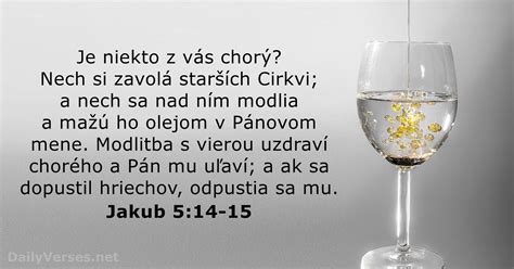 - Jakubov list 5,14-16: "Je niekto z vás chorý? Nech si zavolá starších Cirkvi; a nech sa nad ním modlia a mažú ho olejom v Pánovom mene. Modlitba s vierou uzdraví chorého a Pán mu uľaví; a ak sa dopustil hriechov, odpustia sa mu. Vyznávajte si teda navzájom hriechy a modlite sa jeden za druhého, aby ste ozdraveli. Lebo veľa zmôže naliehavá modlitba spravodlivého."