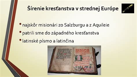 Prijatie kresťanstva na našom území je spájané s misiou sv. Cyrila a sv. Metoda, hoci je prakticky nesporné, že kresťanskí misionári pôsobili na dnešnom Slovensku už predtým. Cyril a Metod pochádzali z východného (byzantského) kultúrneho okruhu a v tomto duchu vplývali aj na zrod našej písomnej kultúry.