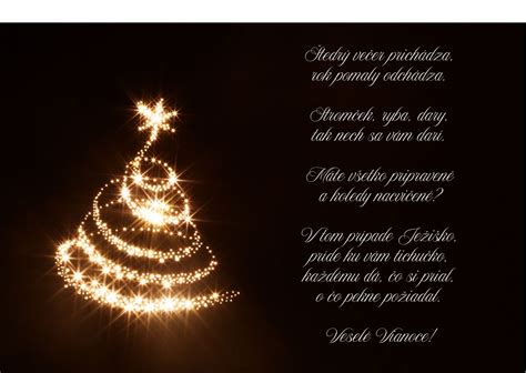 - Vonku počuť vianočný zvon. Nech ťa obchádza sviatočný zhon. Užívaj si pokoj a teplo domova, Nový rok môžeš začať opäť odznova. Veselé Vianoce.