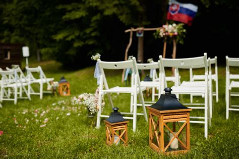 - Osvetlenie: Ak svadba pokračuje do večera, osvetlenie je kľúčové. Svetelné reťaze, sviečky, solárne lampy alebo lampióny vytvoria príjemnú atmosféru.