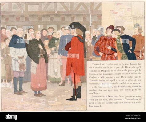 Duchovia svätých jej prikázali, aby vycestovala za dauphinom Karolom na hrad Chinon a pomohla mu stať sa kráľom. Johanka sa v roku 1428 vo svojich šestnástich rokoch na túto cestu naozaj vydala. V meste Vaucouleurs požiadala veliteľa posádky Roberta de Baudricourta, aby jej dal ozbrojený sprievod. Zmienila sa mu aj o svojich zjaveniach a o tom, že jej to prikázal Boh.