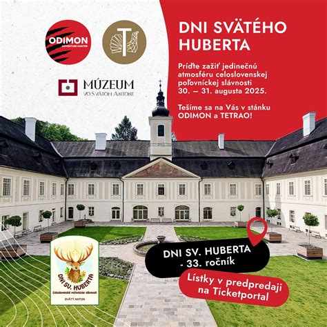 Svätý Anton sa počas posledného augustového víkendu opäť po roku stal centrom slovenských poľovníckych tradícií. Atmosféra tisícov návštevníkov, poľovnícke tradície, súťaže i prezentácia práce lesníkov a poľovníkov. Také boli tohtoročné Dni sv. Celoslovenské poľovnícke slávnosti Dni sv. Tento víkend sa v areáli Múzea vo Svätom Antone koná už 31. Slovenská poľovnícka komora na sociálnej sieti avizuje blížiaci sa Sviatok všetkých poľovníkov. Obdivovatelia trofejí poľovnej zveri majú sviatok.