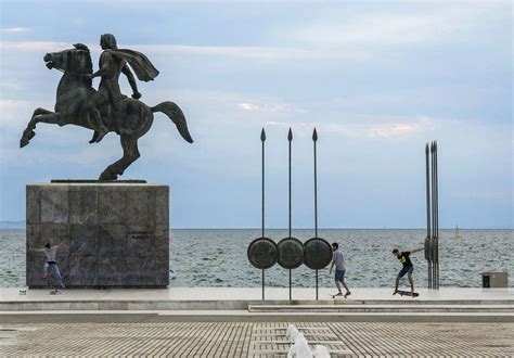 Po tom, ako si urobíme nádherné fotky, pokračujeme ku šesť metrov vysokej soche Alexandra Veľkého, ktorá sa nachádza len 400 metrov od veže, v časti Nea Paralia. Pri soche si môžete všimnúť aj dlhé macedónske kopije „sarissy“, vďaka ktorým Alexandrovi vojaci porazili početnejšiu perzskú armádu. Kôň Bukefalos je zrejme najznámejším koňom staroveku. Koňa doviezli do Pelly a nikto ho nedokázal skrotiť. Mladý Alexander si však všimol, že kôň sa bojí vlastného tieňa, a preto ho viedol proti slnku. Bukefalos sprevádzal Alexandra až do Indie, kde ho zabili v krvavej bitke pri rieke Hydaspes v Pandžábe.