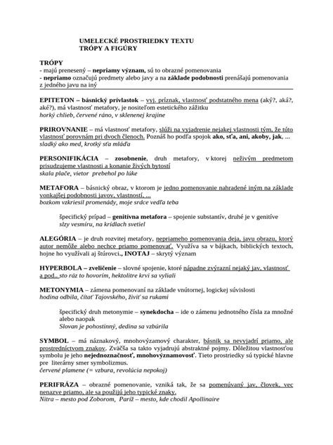 Medzi základné kategórie umeleckých prostriedkov patria trópy a figúry.